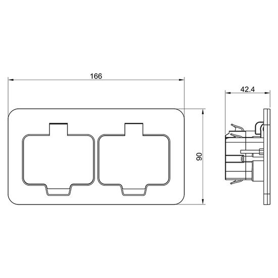 - double socket earthed 2x (2P+E), rectangular design