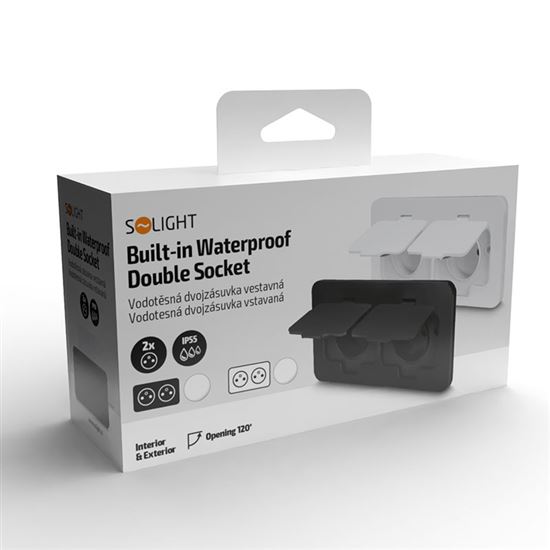 The socket is designed for a maximum load of 3680 W, i.e. total current load 16 A at a network voltage of 230 V~. The package includes an installation box with rubber grommets to increase resistance to moisture penetration from the environment. This double socket cannot be installed in classic installation boxes. The installation of the socket itself is simple and does not require any special tools.