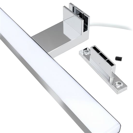 The powerful LED bathroom luminaire with a power input of 12 W and a length of 600 mm is a great solution for larger mirrors and spaces with higher lighting requirements. It offers an elegant chrome-colored design and easy mounting on a mirror, wall or mirror cabinet. Neutral white light (4000 K) provides bright, yet pleasant lighting in the space.