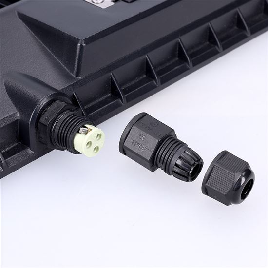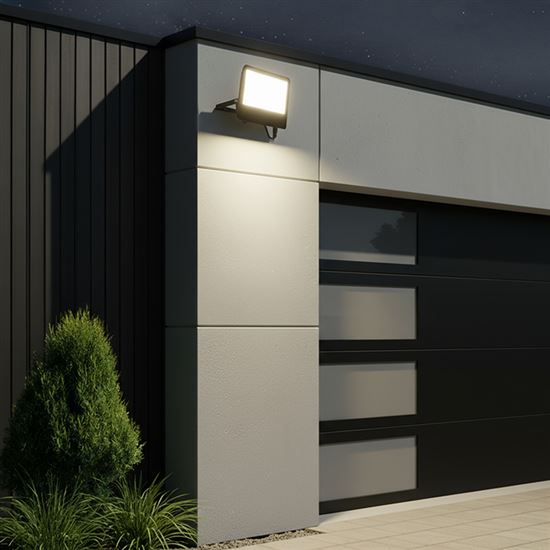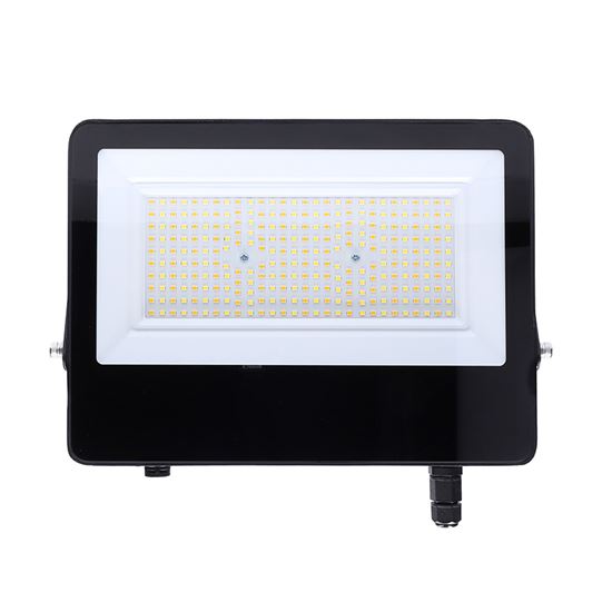 High-quality aluminum processing, IP65 protection and a waterproof connector ensure resistance to rain, dust and environmental influences, making the spotlight perfect for outdoor use. The 120° light cone ensures even coverage of the area. The spotlight has a long LED chip life of up to 25,000 hours, dimensions of 280 × 207 × 30 mm and a black matte surface that is easy to integrate into any space. It is suitable for lighting halls, industrial buildings and construction areas.