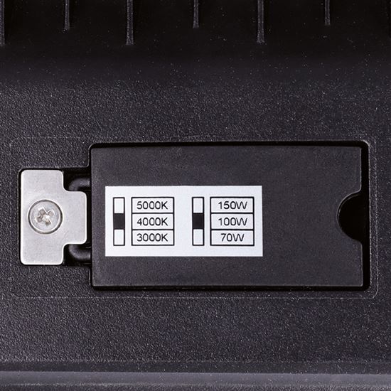 The most powerful model from the TOP spotlight series offers a massive light output of up to 21,000 lm at a full 150W, which makes it ideal for lighting large areas, sports fields or industrial zones. Thanks to the switchable power, the spotlight can be set to 110W (15,400 lm) or 70W (10,500 lm), which allows you to optimize electricity consumption. The ability to change the light temperature in the range of 3000K–5000K adds to the versatility of the device.