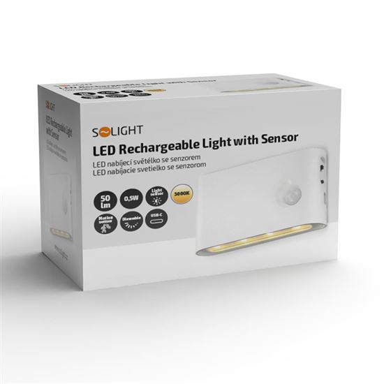 Rechargeable night light for safe movement indoors This rechargeable night light is the ideal solution for illuminating hallways, staircases, bedrooms, or children's rooms. Thanks to the combination of a light and motion sensor, it automatically turns on when the light level is low and motion is detected, ensuring safe movement at night without the need to search for a switch. The light offers the option to adjust the brightness according to your needs, so you can choose a gentle dim light or stronger illumination up to 50lm. The warm white light with a color temperature of 3000K creates a pleasant atmosphere and does not disturb sleep.