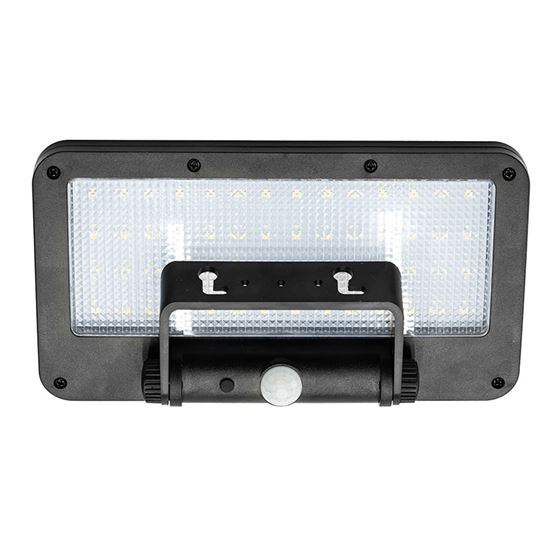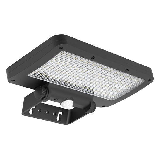 Pohybový senzor s detekčním úhlem 120° a dosahem až 8 metrů aktivuje světlo na 20 nebo 20 sekund dle zvoleného režimu. V noci může světlo fungovat i v režimu tlumeného osvětlení. Napájení zajišťuje integrovaná Li-Ion baterie 3,7V / 1500mAh, která se během dne dobíjí solárním panelem (5,5V / 300 mA). Doba nabíjení je přibližně 8 hodin. Díky krytí IP54 je světlo odolné proti dešti i prachu. Rozměry 203 × 145 × 41 mm a černé ABS+PC tělo zajišťují dlouhou životnost a snadnou montáž bez potřeby kabeláže.