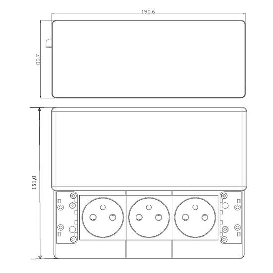 Vestavný blok zásuvek přivádí elektrickou energii přímo do pracovního stolu nebo kuchyňské linky. Tři zásuvky 230 V s dětskými pojistkami jsou schované pod decentním posuvným krytem, který chrání vnitřek před prachem a nečistotami. Napájecí kabel o délce 2m plně dostačuje pro běžné umístění v pracovních deskách a stolech.
