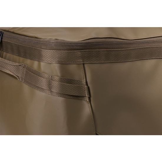 Navržený pro výkon, tento přepravní box je vyrobený z odolné látky 900D s vodoodpudivou úpravou bez PFC, aby odolal opotřebení při vašich dobrodružství a chránil vaše vybavení před vlivy prostředí. Všechny vnější a vnitřní tkaniny, popruhy a síťoviny jsou vyrobeny ze 100% recyklovaných materiálů.